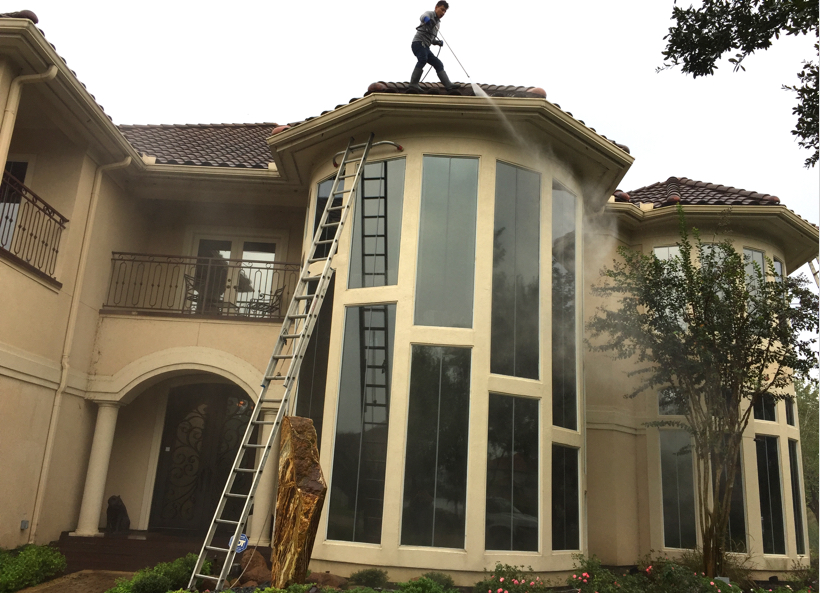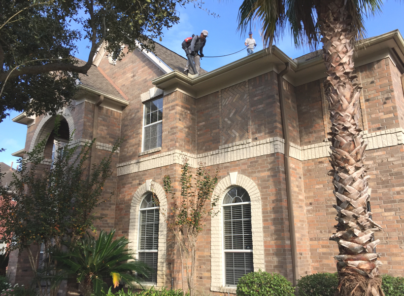 Our gutter cleaning service is finished off with the blowing of any leftover debris as well the flushing of your downspouts.